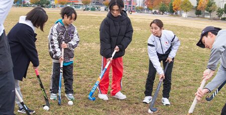 ホッケーは1人では出来ません。一緒にゴールを目指す信頼し合える仲間が必要です。